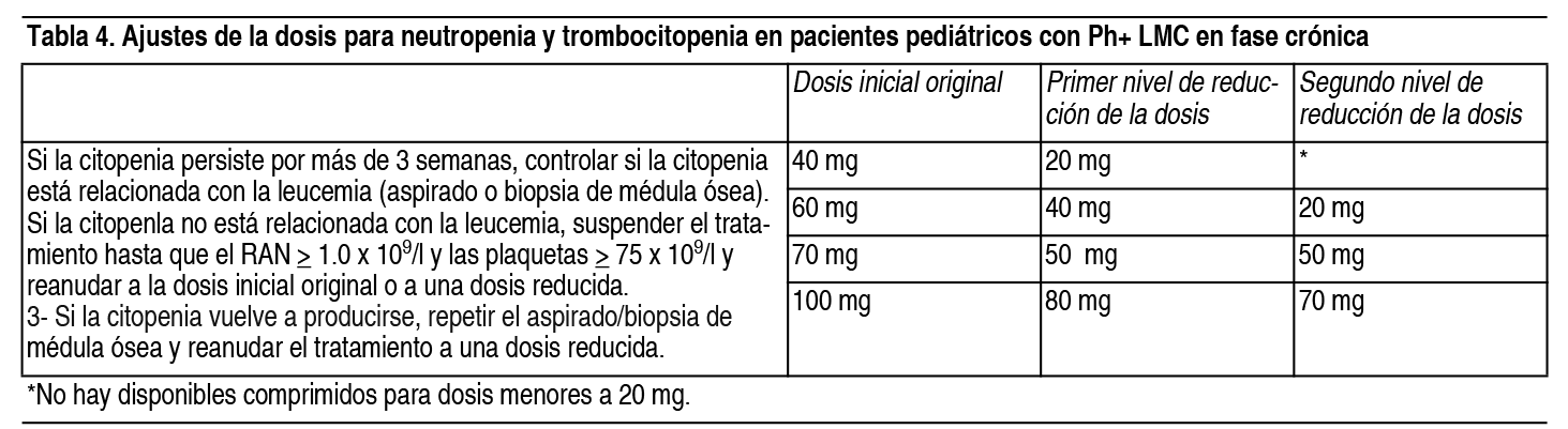 COMPOSICION: Dasanova 20 mg: Cada comprimido recubierto contiene: Dasatinib 20.0 mg, Lactosa Monohidrato 27.0 mg, Celulosa Microcristalina 27.0 mg, Croscarmelosa Sódica 3.2 mg, Hidroxipropilcelulosa 2.4 mg, Estearato de Magnesio 0.4 mg, Alcohol Polivinílico 1.3 mg, Dióxido de Titanio 0.8 mg, Polietilenglicol 0.6 mg, Talco 0.5 mg. Dasanova 50 mg: Cada comprimido recubierto contiene: Dasatinib 50.0 mg, Lactosa Monohidrato 67.5 mg, Celulosa Microcristalina 67.5 mg, Croscarmelosa Sódica 8.0 mg, Hidroxipropilcelulosa 6.0 mg, Estearato de Magnesio 1.0 mg, Alcohol Polivinílico 3.2 mg, Dióxido de Titanio 2.0 mg, Polietilenglicol 1.6 mg, Talco 1.2 mg. Dasanova 70 mg: Cada comprimido recubierto contiene: Dasatinib 70.0 mg, Lactosa Monohidrato 94.5 mg, Celulosa Microcristalina 94.5 mg, Croscarmelosa Sódica 11.2 mg, Hidroxipropilcelulosa 8.4 mg, Estearato de Magnesio 1.4 mg, Alcohol Polivinílico 4.5 mg, Dióxido de Titanio 2.8 mg, Polietilenglicol 2.3 mg, Talco 1.7 mg. Dasanova 100 mg: Cada comprimido recubierto contiene: Dasatinib 100.0 mg, Lactosa Monohidrato 135 mg, Celulosa Microcristalina 135 mg, Croscarmelosa Sódica 16 mg, Hidroxipropilcelulosa 12 mg, Estearato de Magnesio 2.0 mg, Alcohol Polivinílico 6.4 mg, Dióxido de Titanio 4.0 mg, Polietilenglicol 3.2 mg, Talco 2.4 mg. ACCION: Agente Antineoplásico. lnhibidor de la proteína quinasa. Código ATC: L01XE06. INDICACIONES: Dasanova está indicado para el tratamiento de pacientes adultos con: Leucemia mieloide crónica (LMC) con cromosoma Filadelfia positivo (Ph+) en fase crónica recién diagnosticada. LCM en fase crónica, acelerada o blástica, con resistencia o intolerancia al tratamiento previo, incluido imatinib. Leucemia linfoblástica aguda (LLA) con cromosomas Filadelfia positivo (LLA Ph+) y LMC linfoblástica con resistencia o intolerancia a tratamiento previo. Dasanova está indicado para el tratamiento de pacientes pediátricos con: Leucemia mieloide crónica (LMC) con cromosoma Filadelfia positivo (Ph+) en fase crónica recién diagnosticada o leucemia mieloide crónica (LMC) con cromosoma Filadelfia positivo (Ph+) en fase crónica resistente o intolerante a la terapia previa, incluyendo imatinib. Leucemia linfoblástica aguda (LLA) con cromosomas Filadelfia positivo (LLA Ph+) recién diagnosticada en combinación con quimioterapia. DOSIS: El tratamiento debe ser iniciado por un médico especializado en el diagnóstico y tratamiento de los pacientes con leucemia. Pacientes adultos: La dosis inicial recomendada para la leucemia mieloide crónica (LMC) es de 100 mg administrado oralmente 1 vez al día. La dosis inicial recomendada para leucemia mieloide crónica (LMC) en fase acelerada, leucemia mieloide crónica (LMC) en fase mieloblástica o linfoblástica o LLA Ph+ es de 140 mg administrado oralmente 1 vez al día. Población pediátrica (Ph+ LMC - fase crónica y Ph+ - LLA): La dosificación para niños y adolescentes está basada en su peso corporal (ver Tabla 1). Dasatinib se administra 1 vez al día oralmente y la dosis debe ser recalculada cada 3 meses en base a los cambios en el peso corporal o más seguido en el caso de ser necesario. No se recomienda la formulación en comprimidos para pacientes con un peso menor de 10 kg. Los aumentos o reducciones de la dosis se recomiendan con base en las respuestas y la tolerabilidad individual de cada paciente. No hay experiencia en el tratamiento con dasatinib en niños menores de 1 año. La dosis inicial diaria recomendada de dasatinib comprimidos en pacientes pediátricos se muestra en la Tabla 1 a continuación: Ver Tabla Duración del tratamiento: En los estudios clínicos publicados, el tratamiento con dasatinib en adultos con Ph+ LMC en fase crónica, con LMC en fase acelerada o fase mieloblástica o linfoblástica (fase avanzada) o Ph+ LLA y los pacientes pediátricos con Ph+ LMC en fase crónica fue continuado hasta la progresión de la enfermedad o hasta que no pudo ser tolerado por el paciente. El efecto de una suspensión en el tratamiento en el resultado de la enfermedad a largo plazo después de haber alcanzado una respuesta citogenética o molecular (incluyendo respuesta citogenética completa, respuesta molecular mayor y respuesta molecular 4.5) no ha sido investigada. En algunos estudios clínicos publicados, el tratamiento con dasatinib en pacientes pediátricos con Ph+ LLA se administró de modo continuo conjuntamente con bloques sucesivos de quimioterapia de médula ósea, con una duración máxima de 2 años. En los pacientes que recibieron un trasplante subsecuente de células madre, el dasatinib puede ser administrado durante 1 año más postrasplante. Los aumentos o reducciones de dosis se recomiendan con base en la respuesta del paciente y su tolerancia. Incremento gradual de la dosis: En algunos estudios clínicos publicados de pacientes adultos con LMC y LLA Ph+, se permitió el incremento gradual de la dosis a 140 mg 1 vez al día (LMC en fase crónica) o 180 mg 1 vez al día (LMC en fase avanzada y LLA Ph+), en pacientes que no habían alcanzado una respuesta hematológica o citogenética a la dosis inicial recomendada. Los aumentos de dosis que se detallan a continuación en la Tabla 2 se recomiendan en pacientes pediátricos con Ph+ LMC que no alcanzan una respuesta hematológica, citogenética y molecular en los puntos de tiempo recomendados en el tratamiento corriente. Ver Tabla No se recomienda el escalado de dosis en pacientes pediátricos con Ph+ LLA, dado que el dasatinib en estos pacientes es administrado junto con quimioterapia. Ajustes de la dosis para reacciones adversas: Mielosupresión: En algunos estudios clínicos publicados, se controló la mielosupresíón mediante la interrupción o reducción de la dosis o la discontinuación del estudio de la terapia. Las transfusiones de plaquetas y de glóbulos rojos fueron utilizadas como tratamiento apropiado. Se ha usado el factor de crecimiento hematopoyético en pacientes con mielos